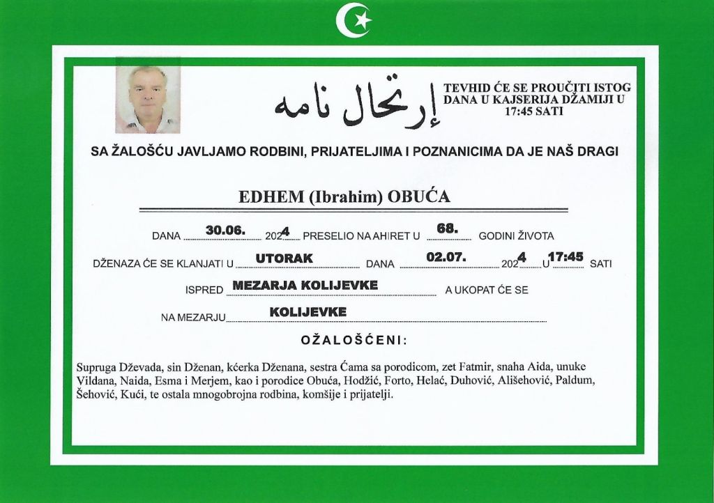 Porodici i prijateljima upućujemo iskrenu sućut!